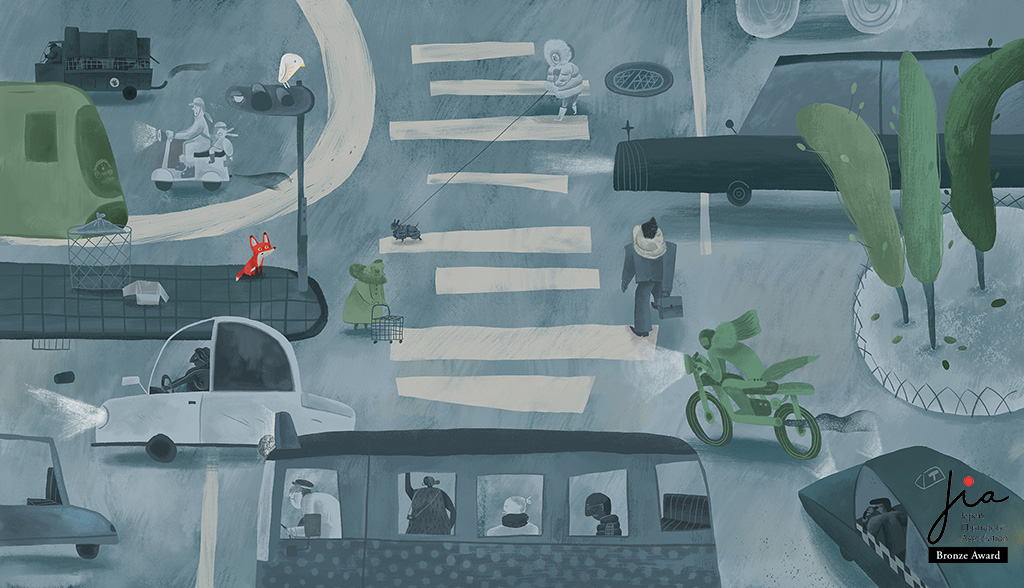 ✵Laimute-Varkalaite Many thanks for sharing this visually sensitive story. Each illustration has its original character and is completed. The role of a colour is selected very well and catches an eye very quickly. Also, it is worth mentioning that the graphic style is really original and contemporary as well. The author has a deep sense of how to compose all details and create harmonious illustrations. Congrats and thanks for this pleasure to our eyes! ✵蟹江隆 作者のメッセージを読むと、絵本を想定して描いたイラストレーションのようだ。 デジダル制作だが、手描きのような味わいを出すことに成功している。