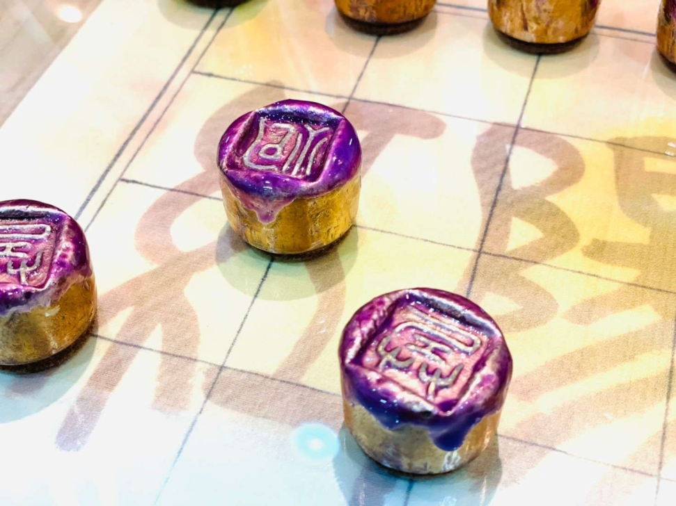 張書豪老師近期完成後現代藝術美學的複合媒材型創作,內容定名為「澄懷觀道」,畫面是以《道德經》經句內容為主體,透過12方篆刻封泥印為基底素材,模擬青銅器表面鑄銘古漢字的效果,呈現「澄懷觀道」的藝術與哲學文化意涵。畫面中隱約可見的是大篆金文「道」,透過「澄懷」以觀「道」來抒情暗喻,藉以摒棄雜念,澄明胸懷,透視大千世界。