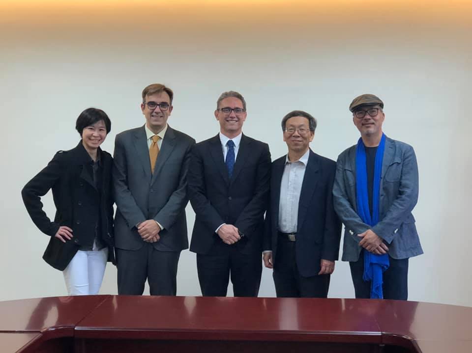 西班牙阿爾卡拉大學(Universidad de Alcala)國際部副校長Julio Cañero博士及國際部主任Ignacio Bravo博士108年12月10日蒞校參訪,由簡江儒主任秘書、美術與文創學系蔡瑞成教授及設計與創意學院楊侖教授陪同接待。