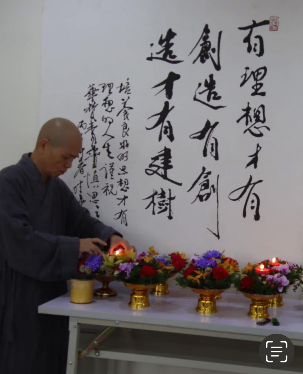 在薰修靜心後,董事長悟觀法師會帶領大家前往慈蓮苑向創辦人曉雲導師捻香致敬,期望教職同仁承接源流、回顧教育初心、安頓身心與發願。一同以感恩之心回望來處,並以清明之志繼續前行。