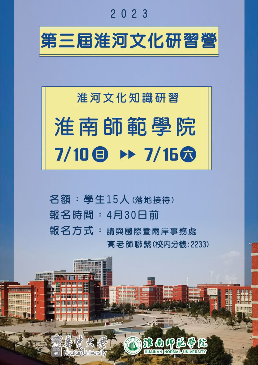 第三屆淮河文化研習營活動(落地招待,名額有限,4月29日前截止報名,動作要快!!已額滿,謝謝支持)