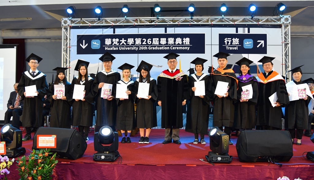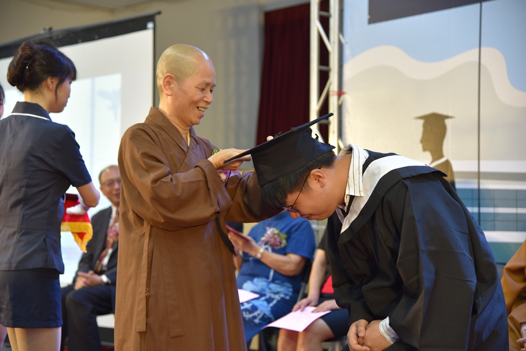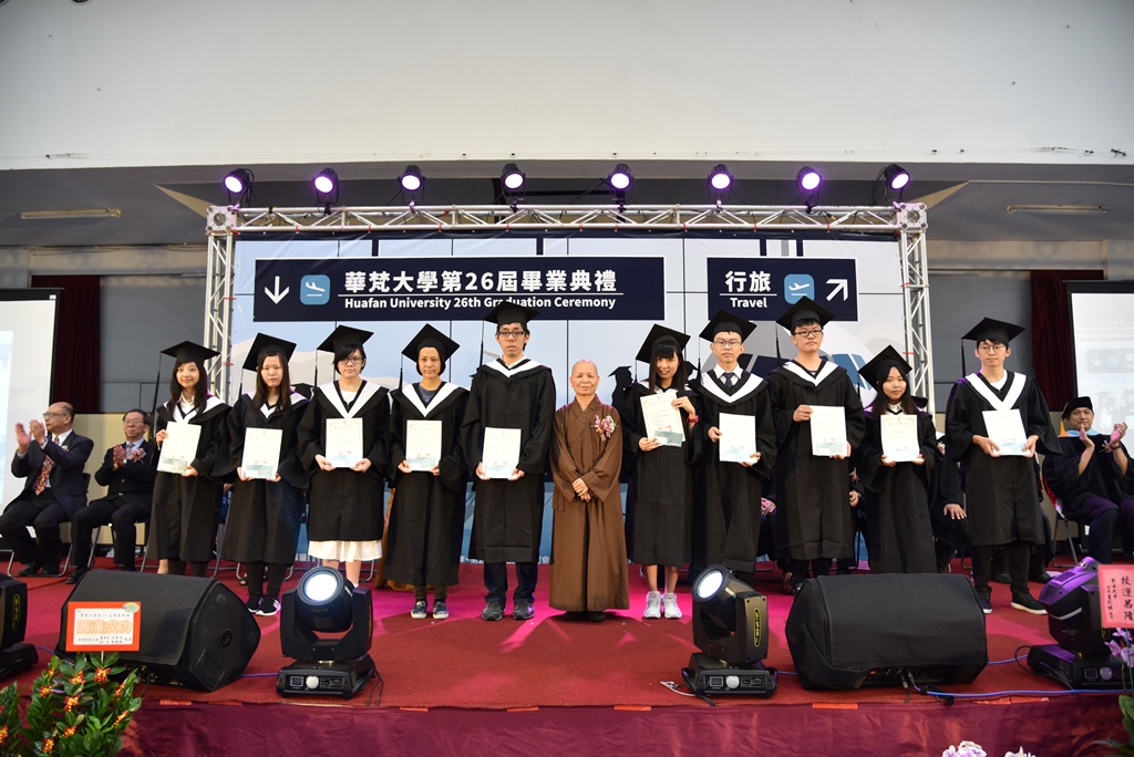 悟觀董事長頒發應屆畢業生學業總成績各班第一名:中國文學系李夢瑤、外國語文學系A班林祐均、外國語文學系B班林芊妙、哲學系李沁榕、佛教學系洪秀琴、工業工程與經營資訊學系A班蔣文樺、工業工程與經營資訊學系 B班蔡伶婕、機電工程學系王璿傑、電子工程學系詹前毅、資訊管理學系A班施禹榕、資訊管理學系B班林鈵譯。