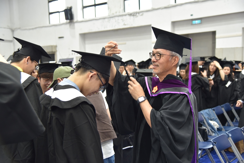 韓國建國大學閔相基校長在致詞中對創辦人曉雲法師創建華梵大學以及覺之教育理念表達最高的敬意外,更恭喜所有畢業生多年努力所獲致的成就。閔校長不忘提醒大家,今日的畢業不僅只是個人的成就,更要感恩在求學期間所有協助我們成長的師長、同學以及父母。能夠擁有感恩他人的個性,將是未來成為世界級領導人的重要特質。
