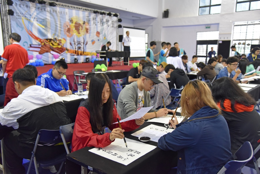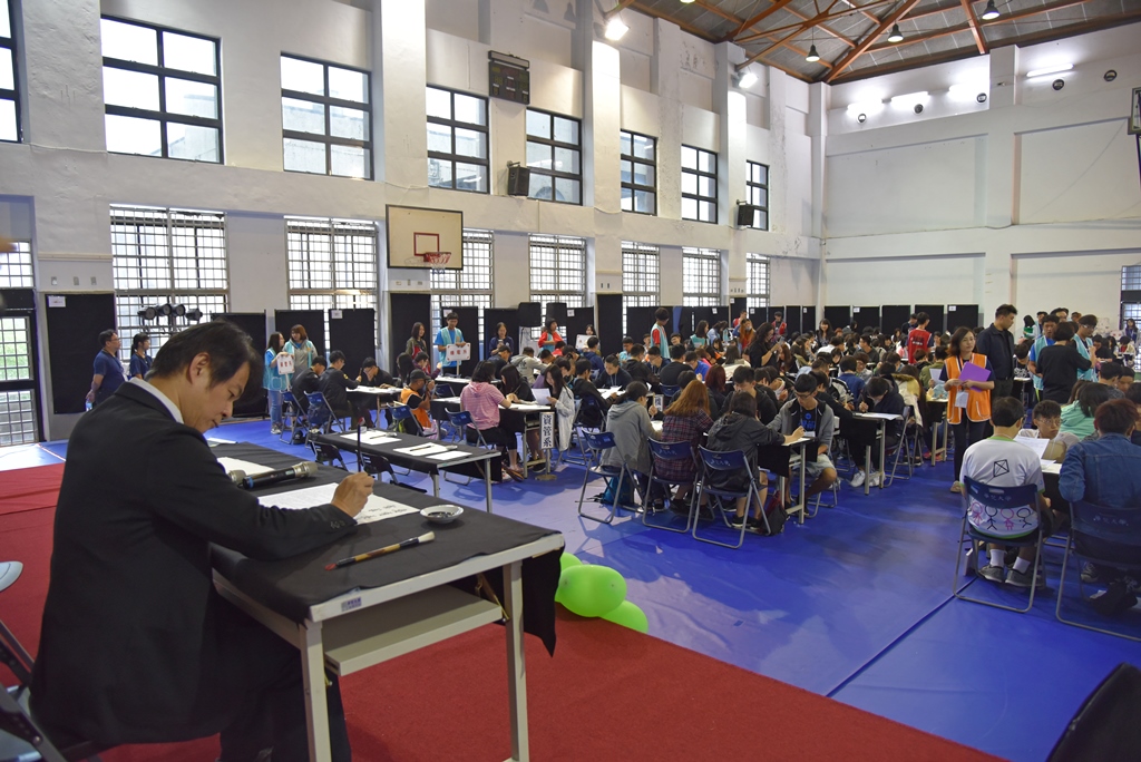 「梵學點墨-新生書法大講堂」活動,藝術設計學院黃智陽院長帶領新生一同書寫。