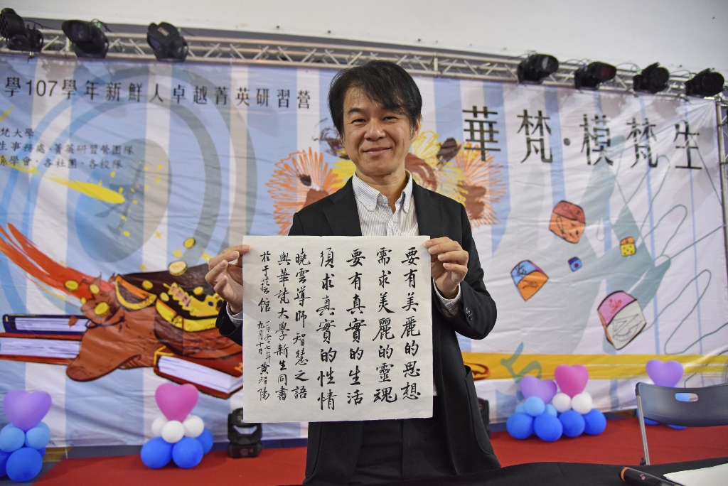 華梵大學於9月10日與11日舉辦107學年度「新鮮人卓越菁英研習營」,研習營包括了認識學校各單位、社團介紹、體檢及歡迎晚會等活動。為了讓現代學子瞭解並體驗更多的傳統文化,學校特別於研習活動的一開始,就規劃了令學生耳目一新的「梵學點墨-新生書法大講堂」活動。