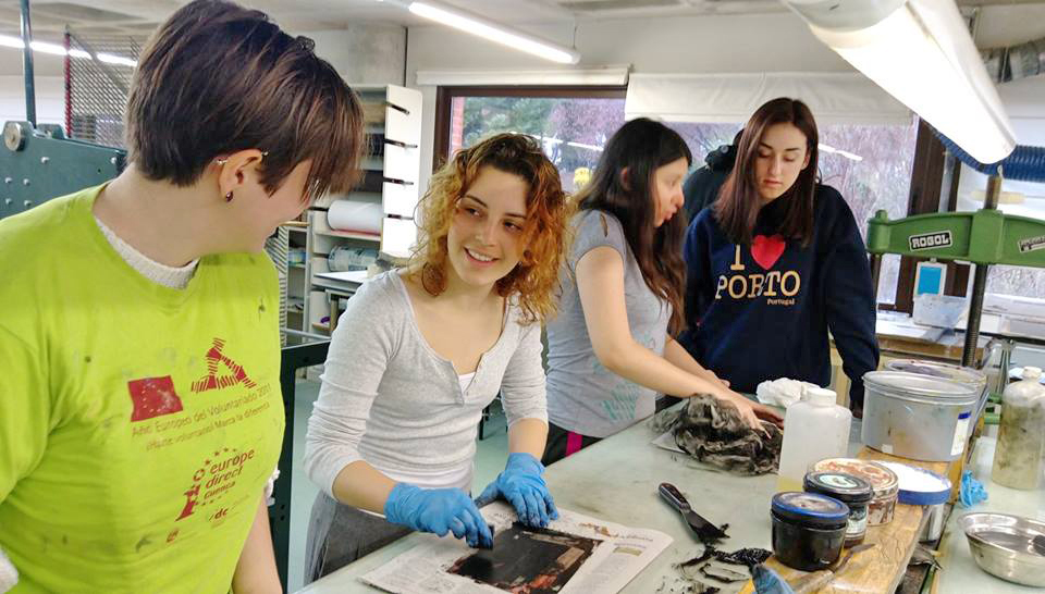 高校長一行參觀UCLM昆卡校區藝術設計學院版畫工作室上課情形。