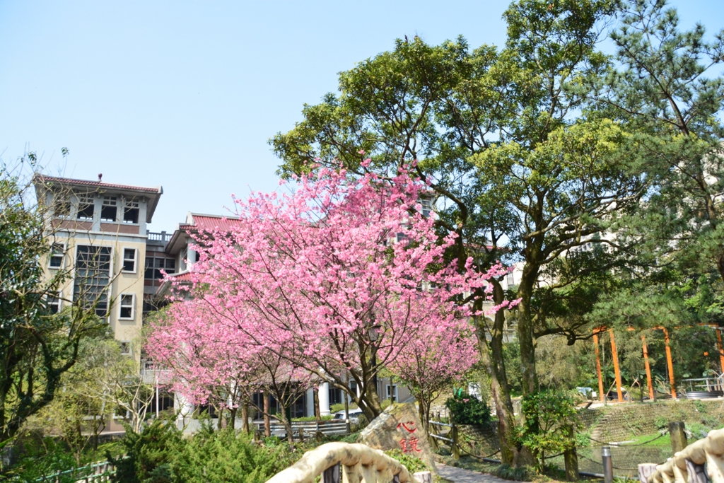 有森林大學美譽的華梵大學,位於新北市石碇大崙山,地形適合種植櫻花,學校在校園各處種植近百株不同種類的櫻花,包括山櫻花、吉野櫻、昭和櫻及八重櫻等,各種種類的櫻花輪流開放,為校園增添許多色彩,近日校方特別製作校園櫻花地圖公布在學校臉書,教職員及同學覺得好驚艷,紛紛轉傳,讓大家看到華梵校園之美。華梵大學表示,這一陣子雨勢較大,櫻花雖打落不少,但仍有櫻花可賞,歡迎民眾上山賞花、健行及呼吸新鮮空氣。