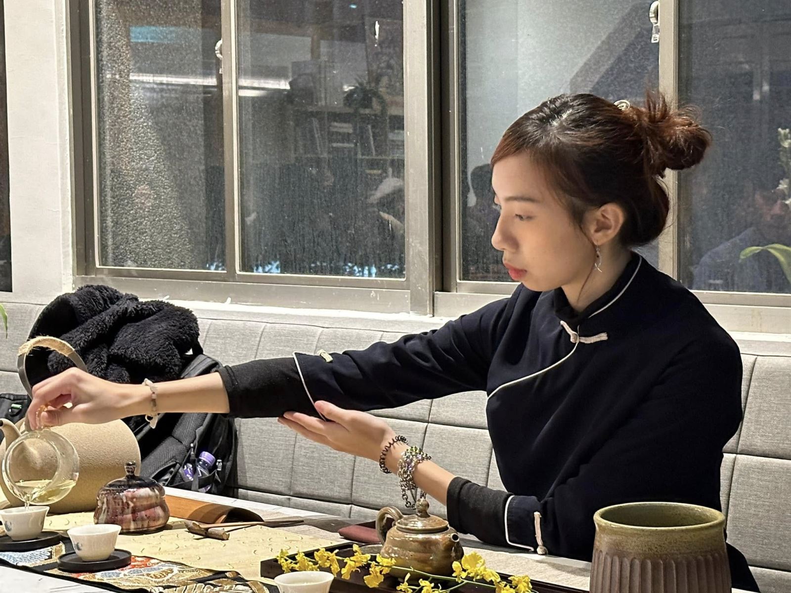 茶品方面則結合石碇包種茶、木柵鐵觀音等在地茶品,慢慢延伸至穩重而厚實的老茶,讓賓客們在啜飲間寧靜身心靈,放心飲茶,細細品味當下,體驗夜裡的「無我」意境,別有一番風味。