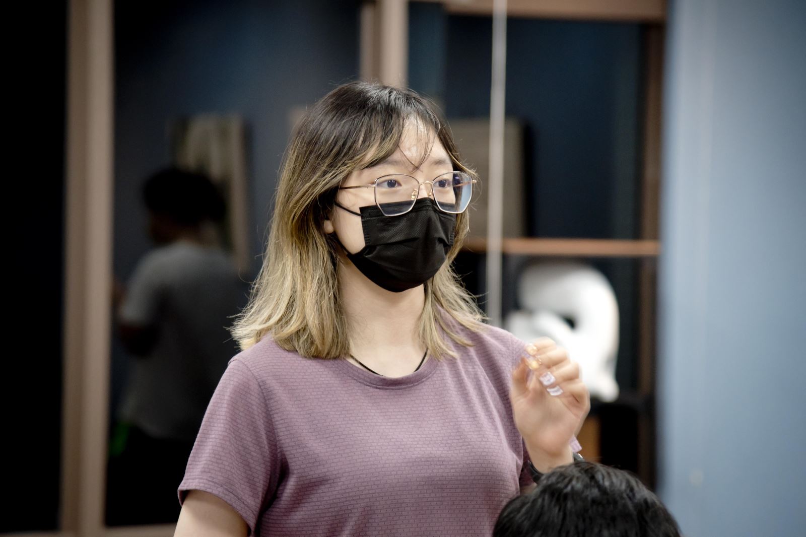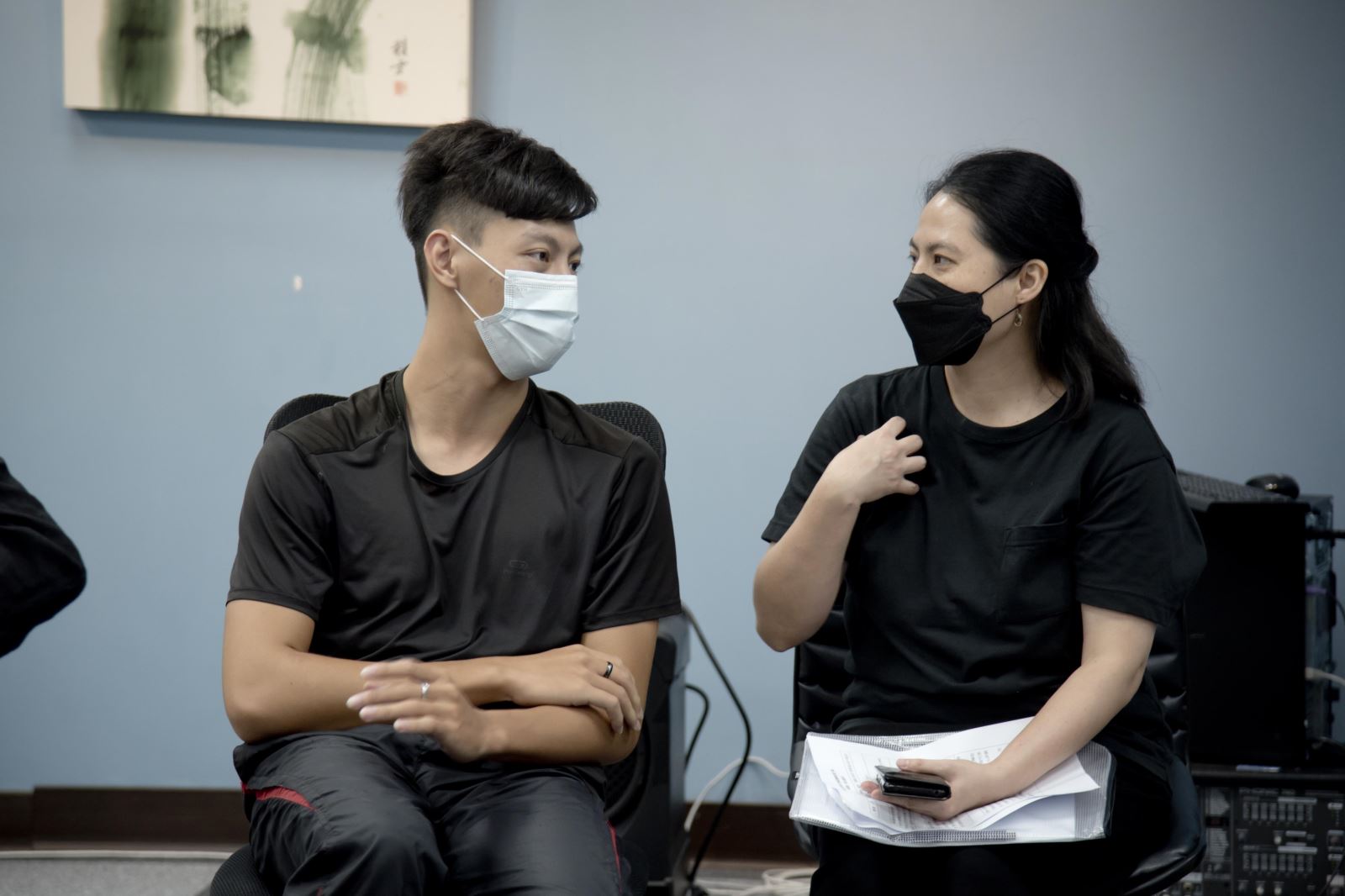 華梵大學教學發展中心主任吳姿瑩老師(右)與自主學習學生對談。