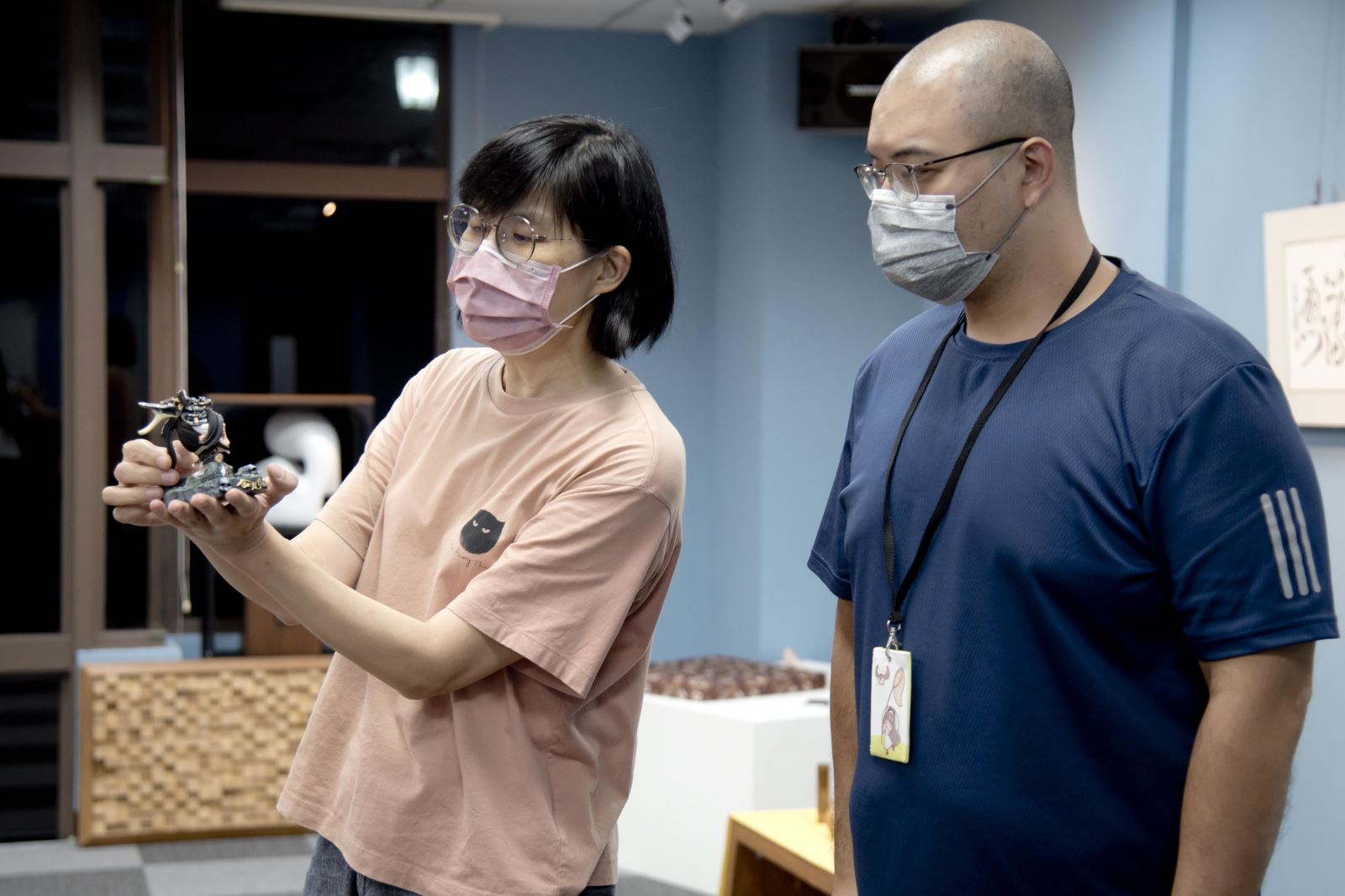 華梵大學智慧生活設計學系陳妙鳳老師(左)以公仔為模型分享數位自造的樂趣。