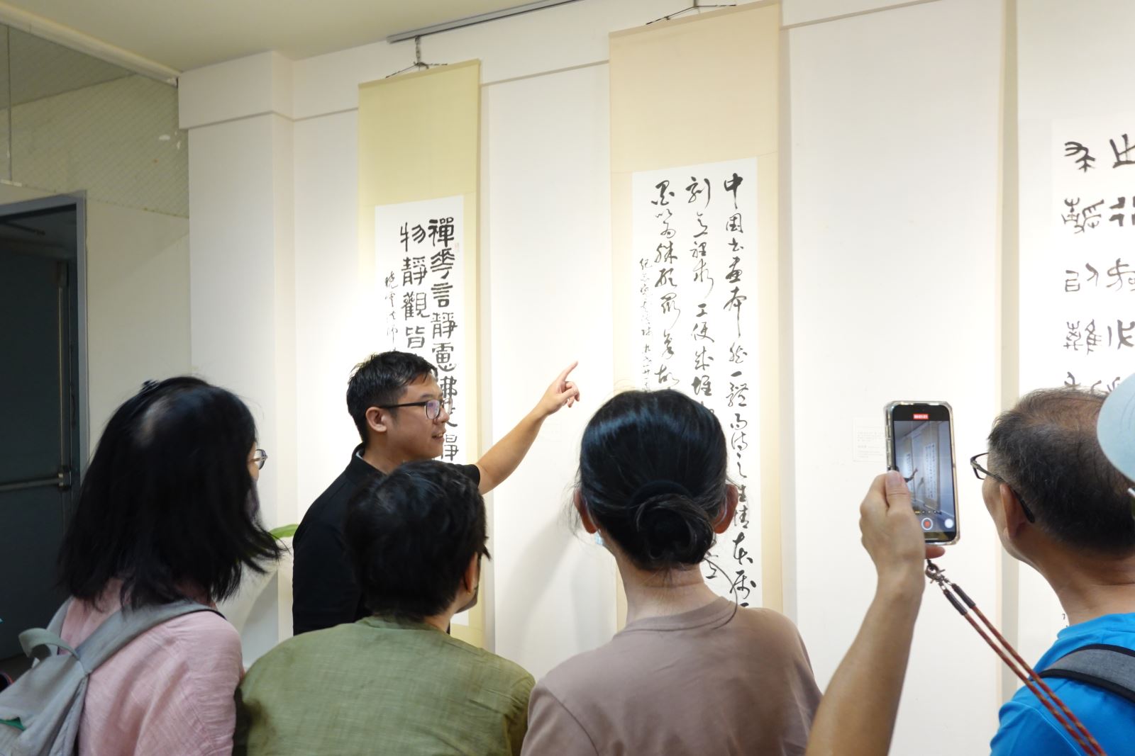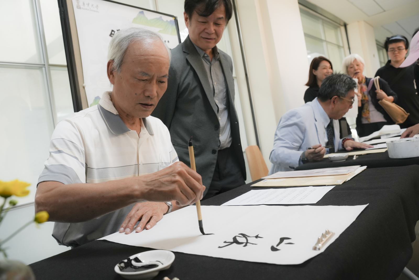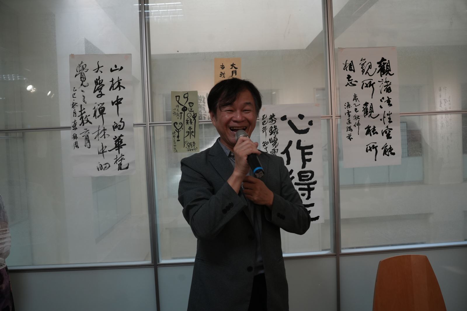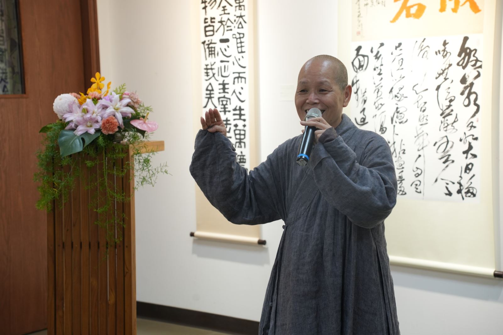 「曉覺禪心」創辦人曉雲導師法語書法展合影。 紀念曉雲導師禪寂21週年,華梵大學東亞書法研究中心舉辦「曉覺禪心——創辦人曉雲導師法語書法展」,邀請30位書法名家及校內外藝術家,從曉雲導師《覺之教育》、《泉聲》、《語絲》等著作中精選出最具代表性的法語段落,於圖資大樓4樓藝文空間進行創作展出。 董事長悟觀法師致詞。 10月15日是華梵創辦人曉雲導師禪寂21週年,學校舉行盛大的紀念活動,上午在松崗與梅園有二代梅樹種植,下午則移至室內舉辦「曉覺禪心——創辦人曉雲導師法語書法展」開幕茶會,只見現場貴賓雲集,座無虛席,人聲鼎沸,充分展現曉雲導師深遠的影響力。 華梵大學李天任校長(右一)也親自下場揮毫,書寫創辦人曉雲導師法語。 許多參展的書法家也親臨會場,包括華梵大學美術與文創學系兼任教授李郁周、中國標準草書學會前理事長施筱雲、臺北縣美展書法傳藝獎得主陳一郎、華梵大學美術與文創學系助理教授聶蕙雲、臺灣女書法家學會理事長連瑞芬、胡説草堂藝文會館創辦人胡九蟬、華梵大學人文與藝術學院助理教授鄧君浩等人。 人文與藝術學院黃智陽院長將眾書法家現場揮毫的墨寶一一展出。 華梵大學悟觀董事長致詞表示,黃智陽院長能集結國內30位書法名家書寫曉雲導師法語並聯合展出,意義非凡,展牆一路看過去就是滿滿的法味,雖然每件都是藝術品,但卻充滿了佛法的思想與精神,也體現了導師的「覺之教育」。 除了書法展覽,現場也有茶席,讓師生一邊品茗一邊交流心得。 李天任校長也說,華梵是社會的清流,堅持覺之教育理念,不會被擊垮,書法更是教學特色,希望每年能聯合國內外書藝名家,一起推動傳承與創新。 「曉覺禪心書」法展現場精彩作品。 策展人黃智陽院長說,曉雲導師終身以書畫藝術為法門,支持以藝入道的理想,感謝各位書家願意將書寫曉雲導師的法語作品留給華梵,這些都是珍貴的文化資產,華梵必當好好保存,弘揚華梵書法特色與辦學精神。 「曉覺禪心」書法展現場導覽,吸引許多校內外師生與貴賓參加。 「曉覺禪心——創辦人曉雲導師法語書法展」開幕現場除了展出各書藝家的精彩墨寶,也有藝術家當場揮毫,並開放學生臨寫導師法語,希望從書法藝術中反思覺之教育的當代意義。展期即日起至11月6日為止,地點在華梵圖資大樓4樓藝文空間,歡迎社會大眾參觀。 書法名家李郁周當場揮毫,書寫創辦人曉雲導師法語。