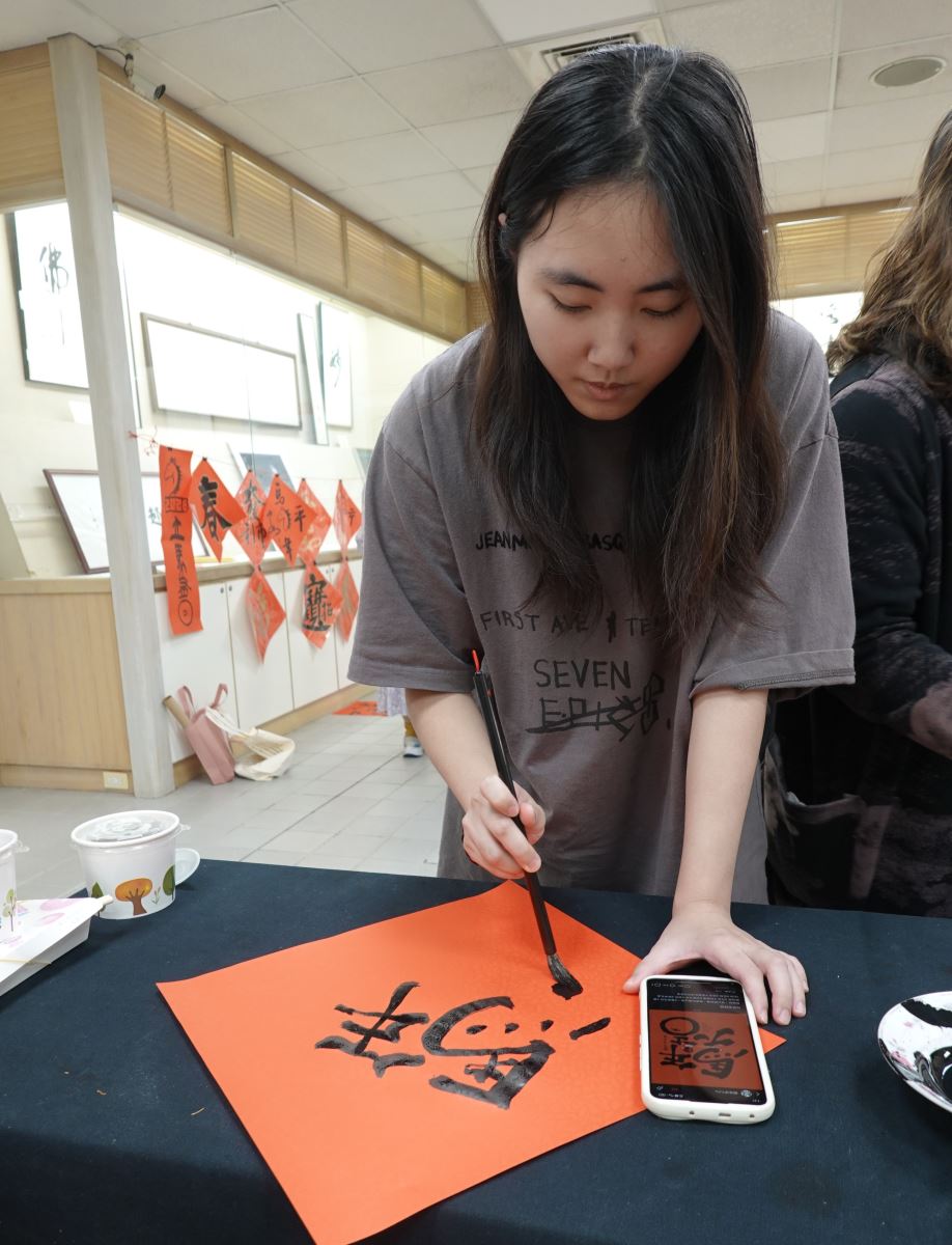 「水墨寫意技法成果展」即日起於華梵文物館展出至23日,歡迎師生與社會大眾前往參觀。 參加「書寫春聯迎新歲」活動的同學不分男女老少都來共襄盛舉。 「書寫春聯迎新歲」活動現場熱鬧非凡。
