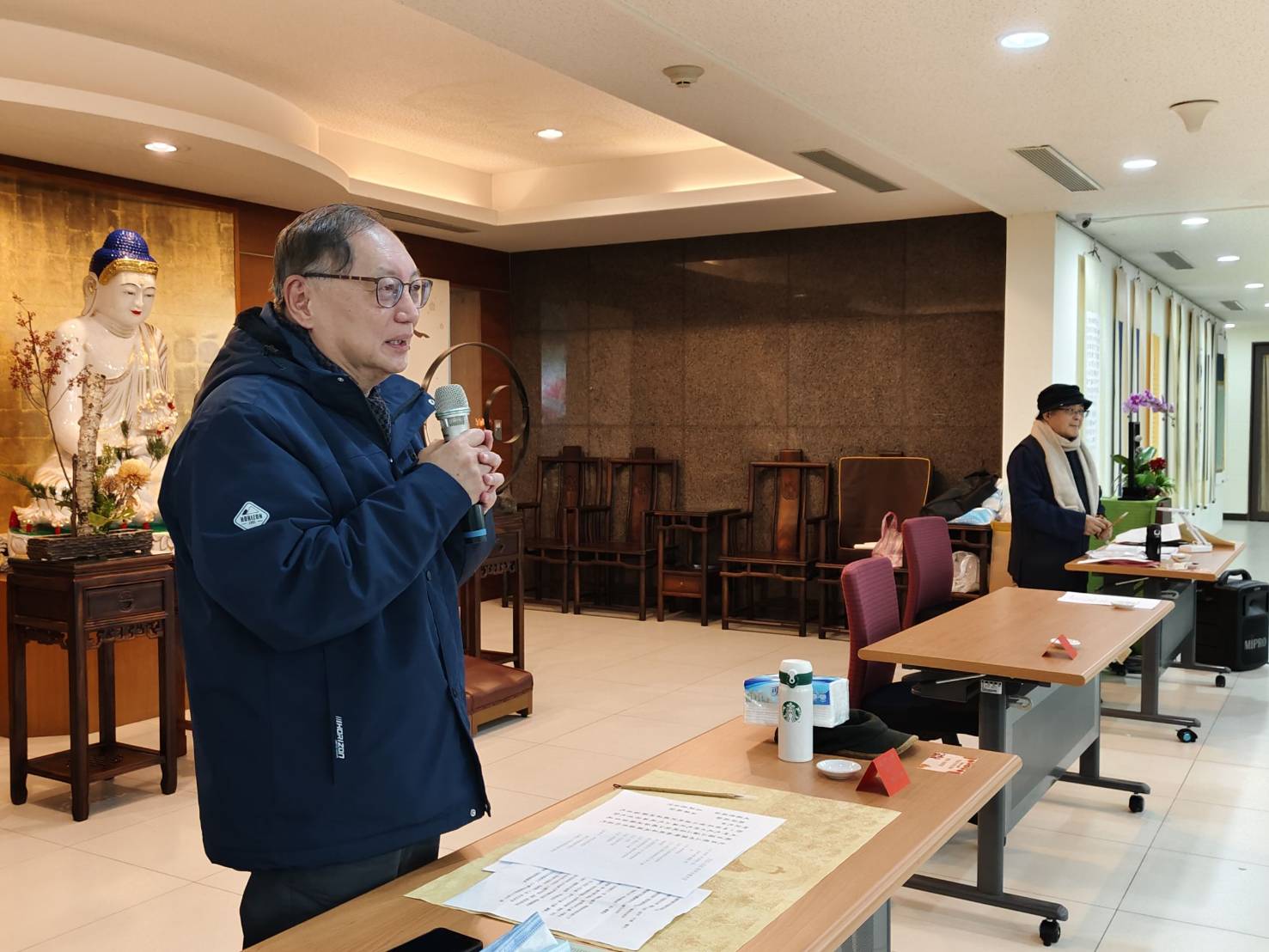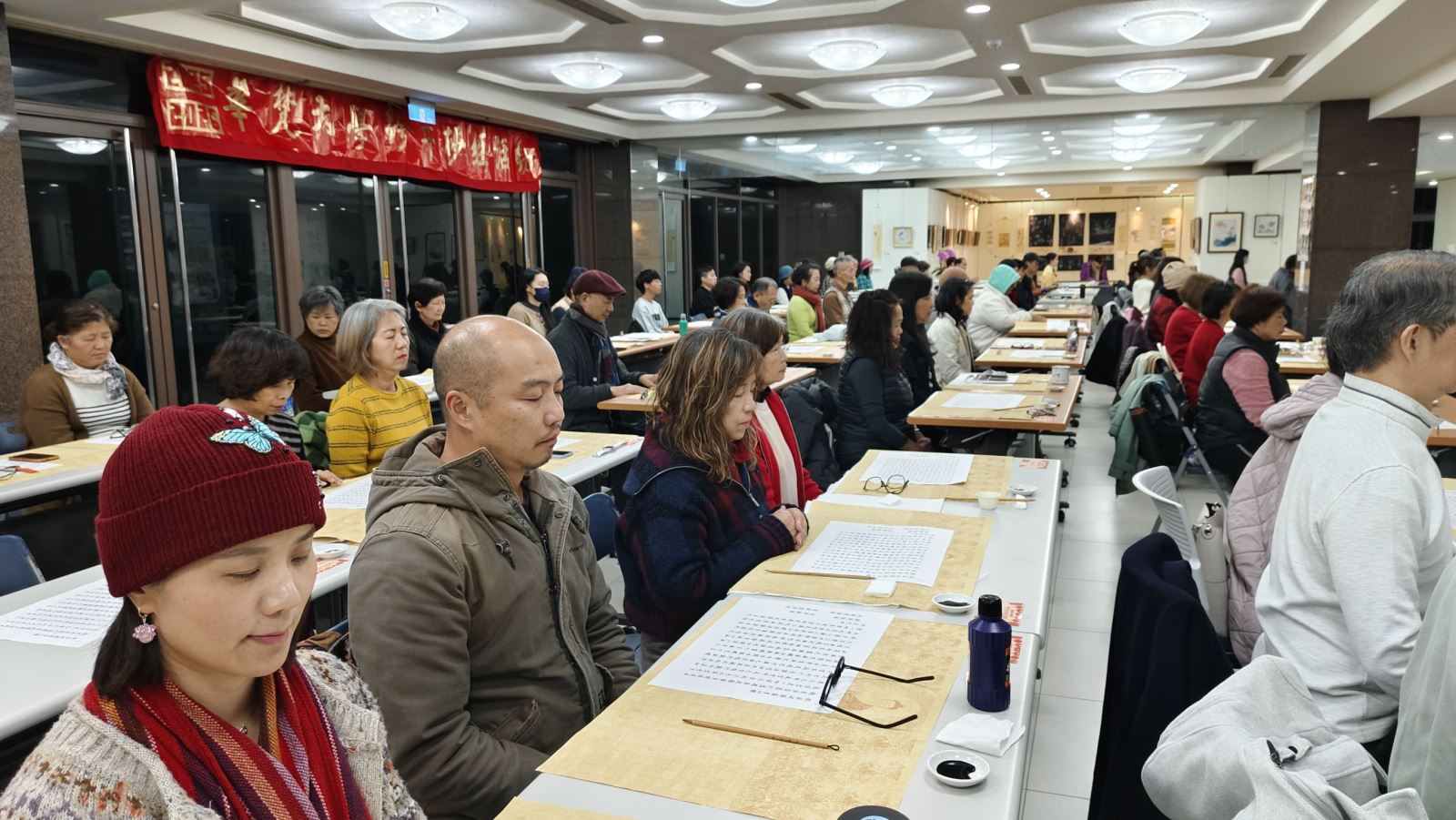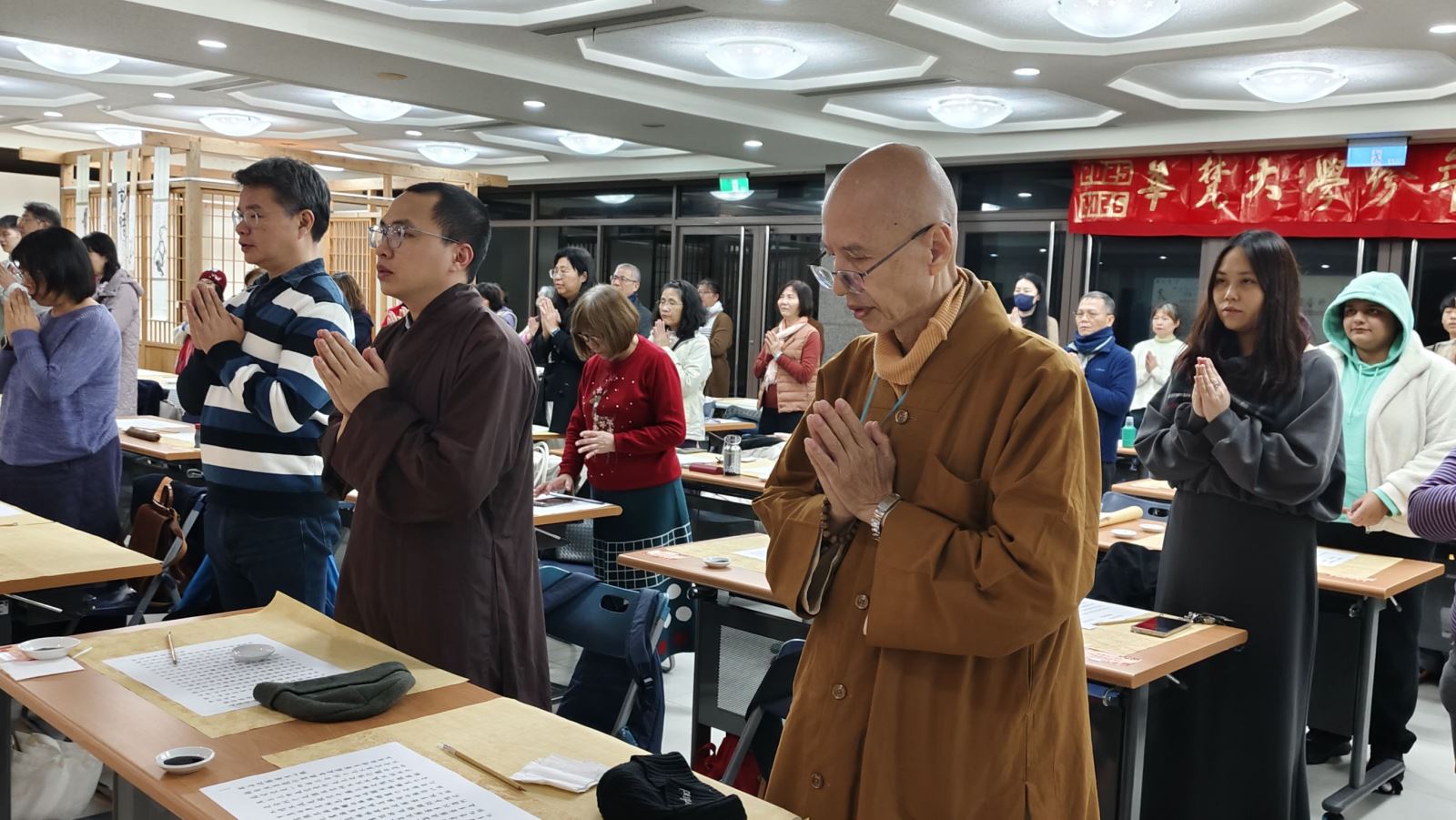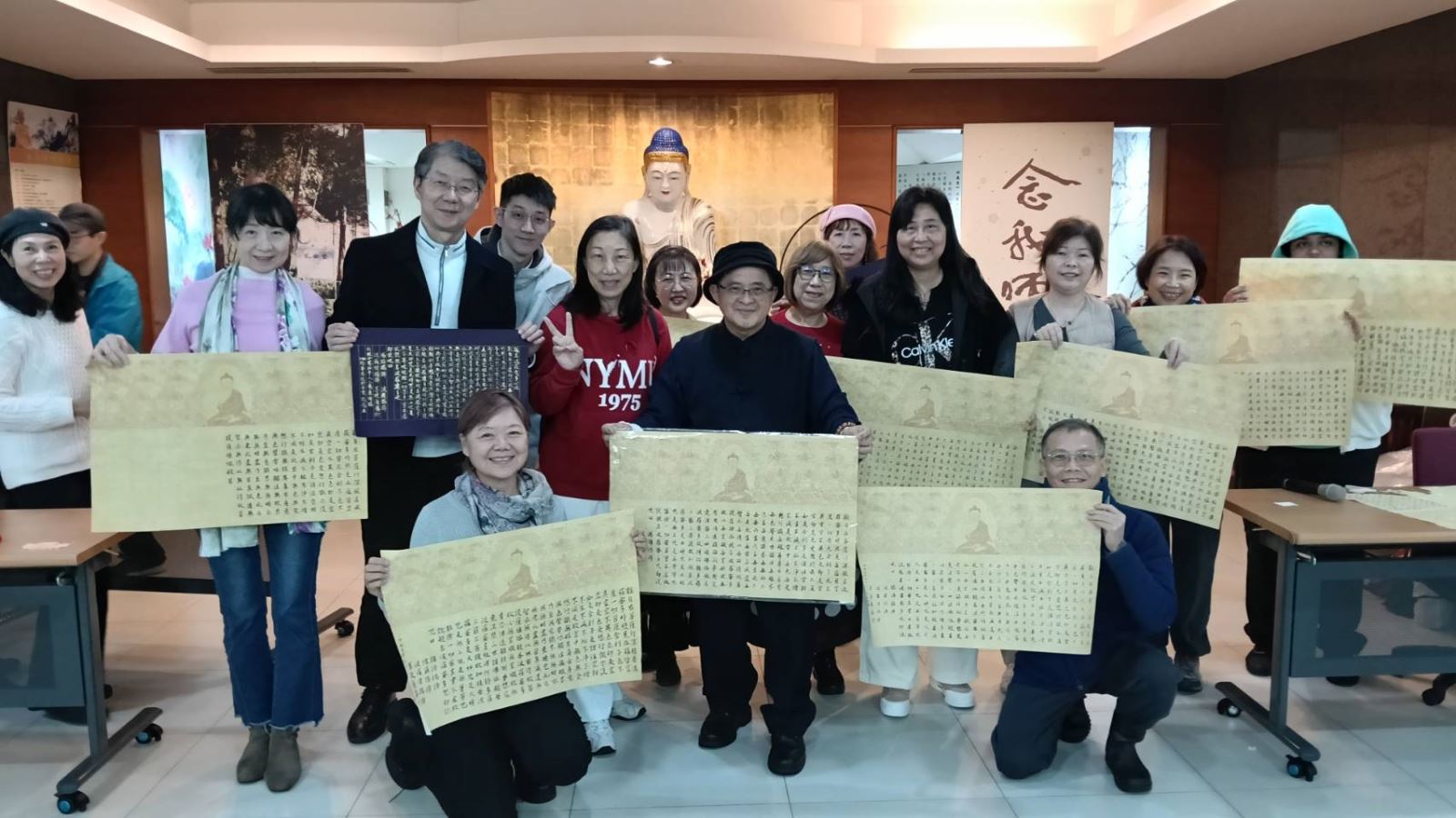 2025年最後一夜華梵大學仍燈火通明,上百人齊聚圖資大樓抄經,祈祝2026幸福美滿,世界和平。 當全台各地的跨年煙火劃破夜空之際,石碇大崙山上正進行一場靜謐而莊嚴的歲末洗禮。華梵大學校覺室、佛教藝術學系攜手中華佛教書畫藝術學會,於2025年最後一夜舉辦跨年抄經活動,108位師生與僧眾在書法大師帶領下,於圖資大樓5樓完成108部《心經》,用最安穩的力量告別2025,喜迎2026年的到來。 華梵佛藝系吳大仁助理教授(左)主持抄經活動。 抄經活動發起人為在兩岸書法藝術界享有盛名的華梵大學佛教藝術學系吳大仁助理教授,他致詞時特別感念創辦人曉雲導師開創華梵這片修學淨土,讓大眾能在山林靈氣中以法相會。 吳大仁老師指出,跨年抄經活動已是第三度在華梵大學舉辦,在揮別舊歲的關鍵時刻,參與者透過筆尖與內心對話,將感恩、懺悔與祈願融入墨色之中,為新的一年營造清淨的磁場。 華梵大學董事會成群豪秘書(左)致詞。 他特別提到,這不僅是書法的藝術展現,更是一場「動中禪」的實踐,大眾無需掛念筆跡是否美觀,因為抄經的精髓在於「筆在哪裡,心就在那裡」的專注力,在放鬆且無罣礙的運筆過程中,參與者能體現禪定的功夫,這也是佛法中「置心一處,無不成辦」的道理。 大家圍繞著書法家吳大仁助理教授(中)分享抄經心得,並享用暖心熱食。 活動當晚華梵校區雖然寒風刺骨,但主辦單位用心準備的熱薑湯與地瓜湯,為會場師生注入暖意。正式動筆前,108位參與者先進行淨心禪坐,隨後在鴉雀無聲的氛圍中開始抄寫。 抄經活動開始前先舉行靜心儀式。 與會成員背景極為多元,除了華梵大學師生、研究生外,還包含台北榮總醫護人員、圓光佛學院學生、多位佛教界法師,甚至有來自印度的留學生跨海參與,展現出宗教與藝術融合的無邊界力量。 抄經活動開始前的禪坐儀式。 隨著2026年元旦凌晨1點的鐘聲響起,108部《心經》悉數圓滿,參與者在完成作品後紛紛露出法喜充滿的笑容,一起合影留念。這場「一期一會」的盛事,讓學佛者在跨年之際獲得精進用功的良機,也祈願這份集體抄經的願力能化作對2026年的祝福,世界和平,國泰民安。 大家拿著自己抄寫的《心經》開心合影留念。