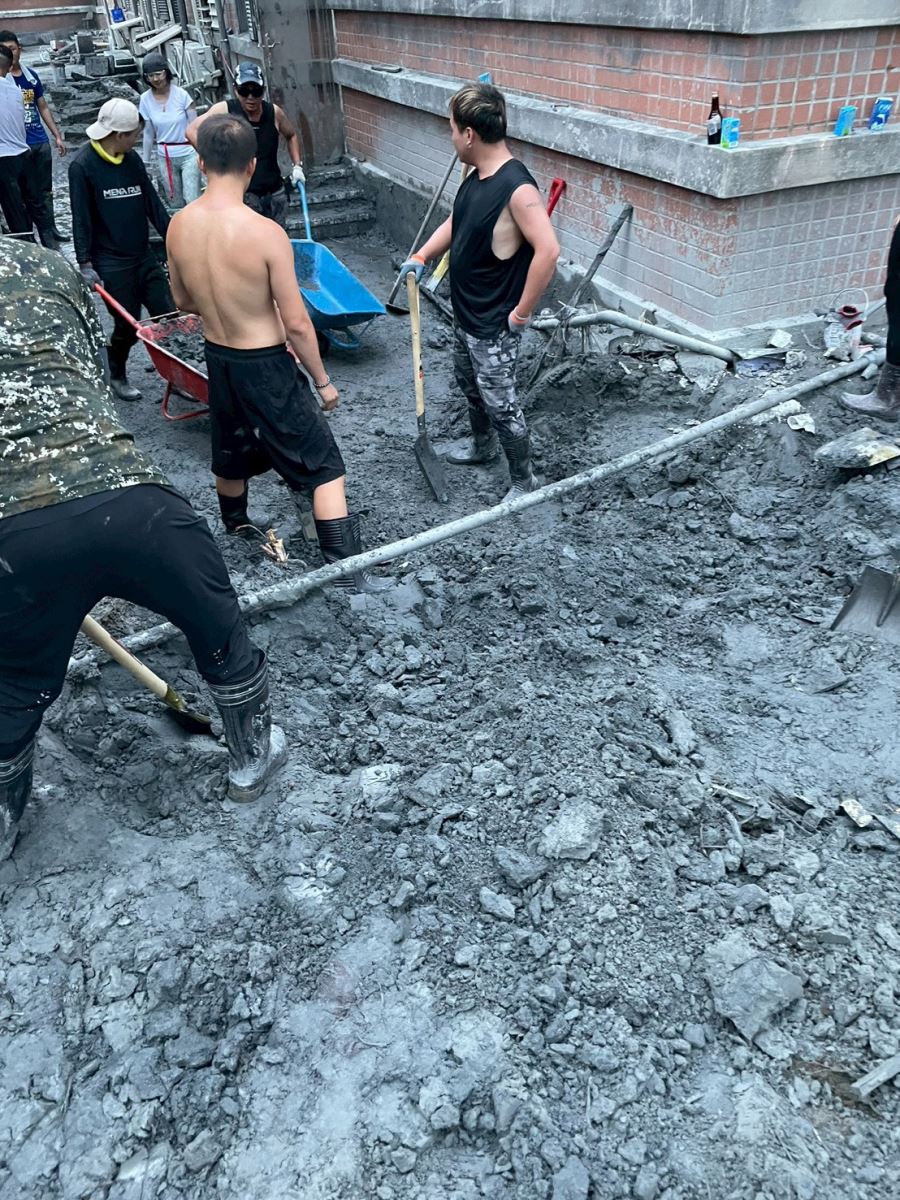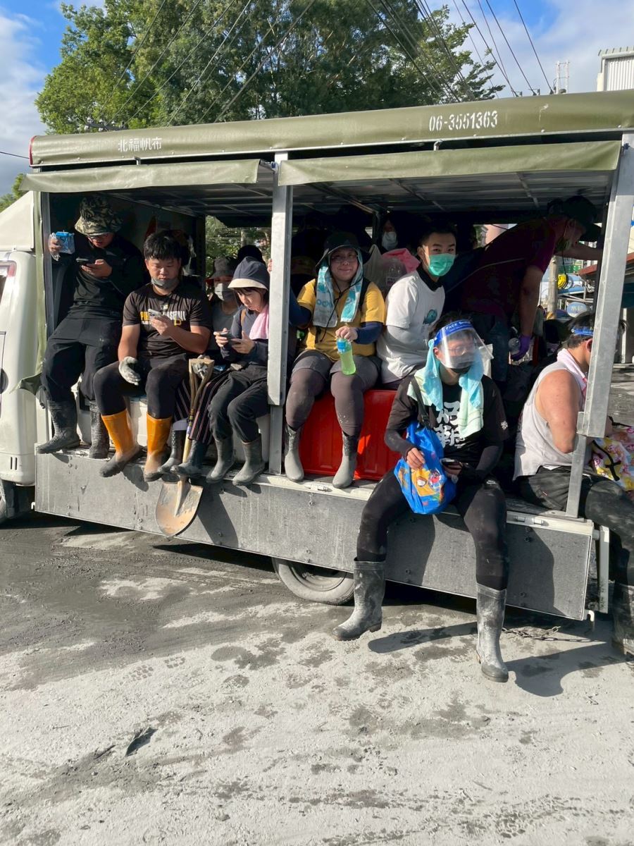 而在挖掘汙泥、搬運殘骸的救災過程中,現場「物資小兵」不斷送來補給,夥伴之間總是不斷詢問「要不要喝水?」、「有沒有受傷?」或是「要不要先休息?」人與人之間的溫度,也成為支撐華梵學子繼續揮汗的莫大力量。