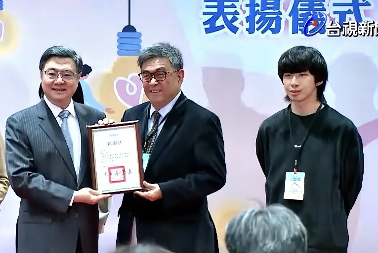行政院卓榮泰院長親自頒贈感謝狀給華梵大學李天任校長與學生代表王慶霖。(圖片出自台視新聞行政院表揚儀式直播畫面截圖) 行政院26日舉行投入花蓮光復鄉救災大學表揚儀式,卓榮泰院長親自頒贈感謝狀給華梵大學李天任校長與學生代表王慶霖,高度肯定華梵學生去年化身「鏟子超人」前往光復鄉救災的義舉。王慶霖說,從災民與志工夥伴身上感受到逆境打不倒的生命正能量,與台灣人的溫暖,是這次救災行動中最珍貴的收穫。
