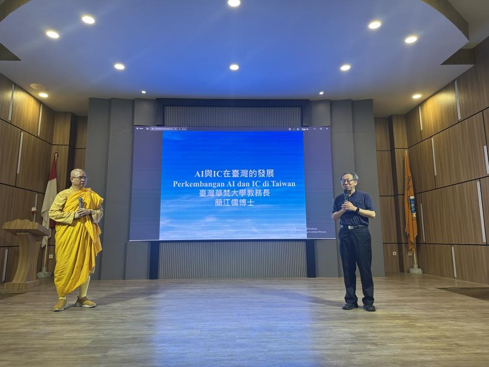 華梵大學1月底由簡江儒教務長帶隊前往印尼棉蘭及周邊地區,展開一系列國際交流行程,實地走訪菩提學校、南洋之暉、培善高級中學、佛光高級中學及 Brigjend Katamso 高中等多所指標性學校,帶去台灣尖端的AI科技應用發展藍圖,更透過學長姐的親身經驗分享,為印尼學子種下通往世界的夢想種子。