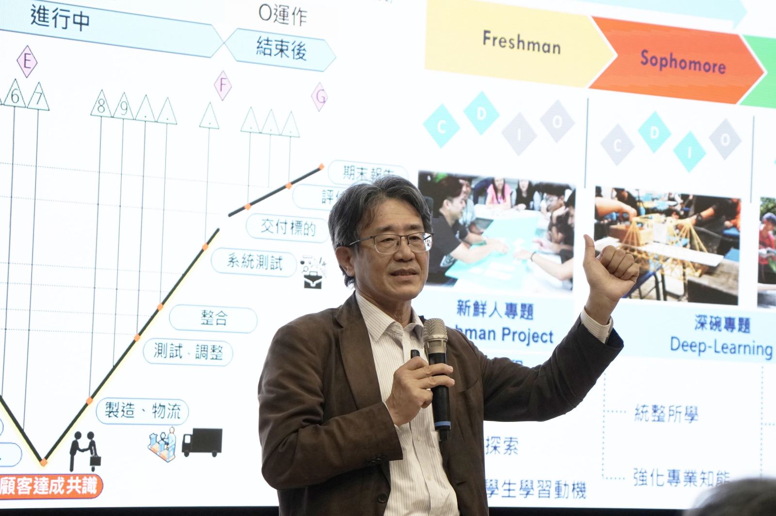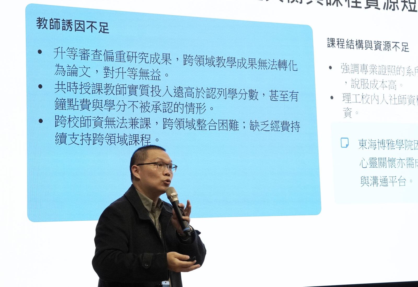「教育是一場生命覺醒的工程。」李天任校長呼籲全體教職同仁共同參與這份願景藍圖,每一位老師都在各自領域邁出一步,以藝術點亮感性,以科技強化理性,以正念啟迪自覺,以慈悲實踐共好,攜手為華梵大學在下一個十年開啟最燦爛的篇章。 逢甲大學合作經濟暨社會事業經營學系翟本瑞教授進行高教改革經驗與iLink計畫資源分享。 「丙午共識營」上午也邀請逢甲大學合作經濟暨社會事業經營學系翟本瑞教授進行高教改革經驗與iLink計畫資源分享,同時對華梵大學的因應之道提出建言。
