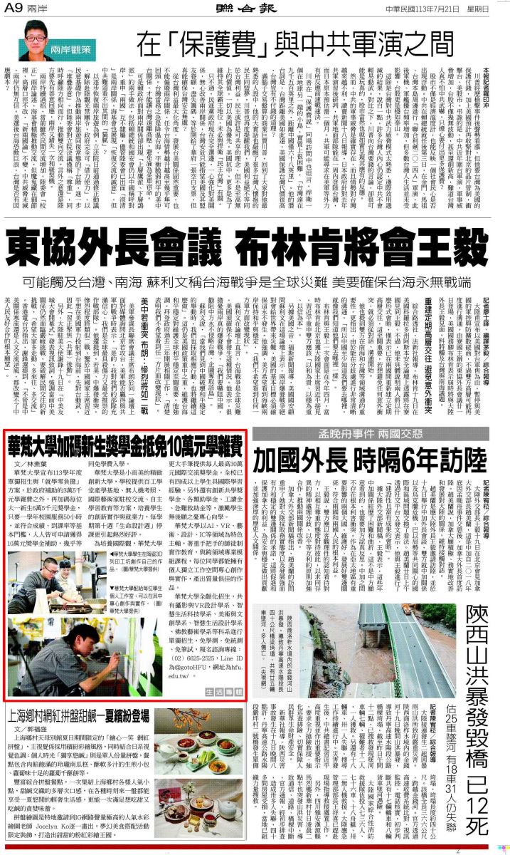 華梵大學加碼新生獎學金抵免10萬元學雜費(聯合報與其他媒體)