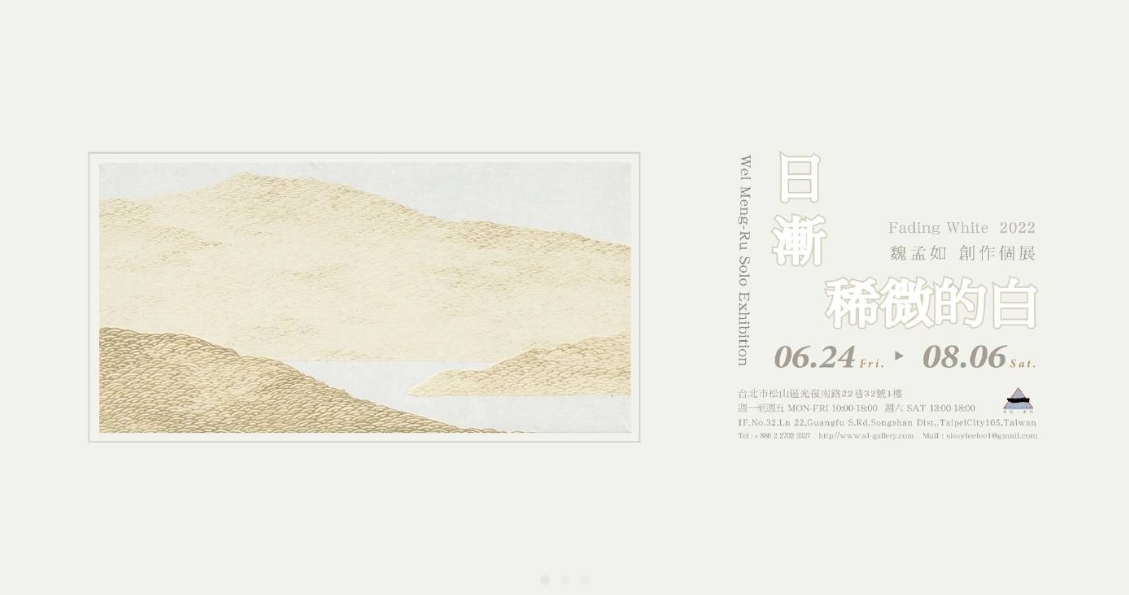 本期展覽為當代一畫廊開啟新的篇章,感謝各位一直以來對當代一畫廊的關心和支持,讓我們持續呈現優質的展覽至今,現 當代一畫廊『已遷至臺北市松山區光復南路22巷32號』。誠摯地邀請各位朋友蒞臨,於6月24日(五)至8月6日(六),前來欣賞魏孟如《日漸稀微的白》創作個展。