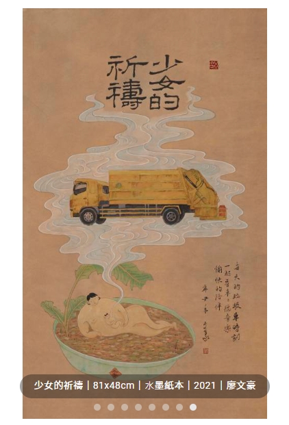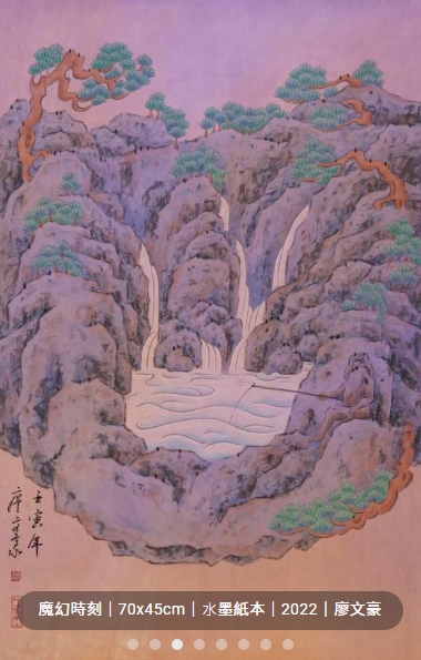 校友廖文豪從華梵美術到碩士一直關注山水與人的的關係,是城市人逃不了人群卻可以嚮往的藝術桃花源⋯⋯