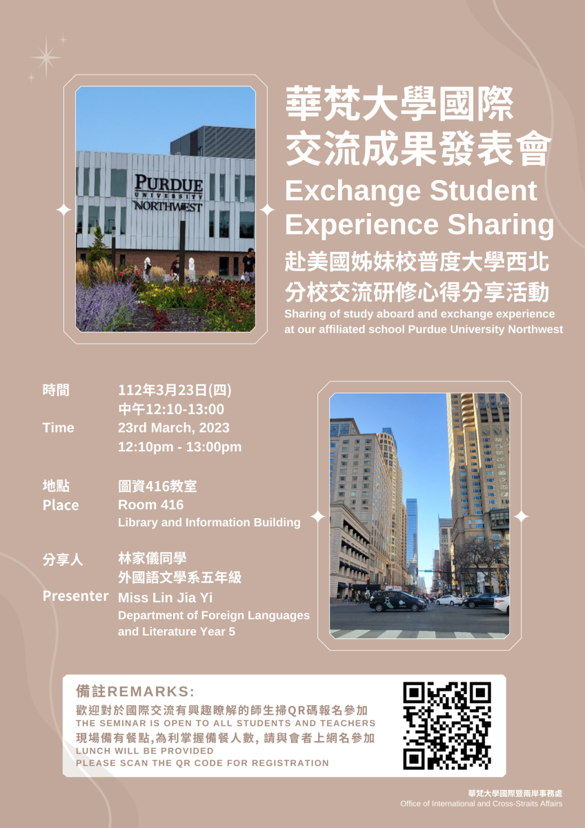 國際交流成果分享:赴美國姐妹校普度大學西北分校交流研修心得分享活動