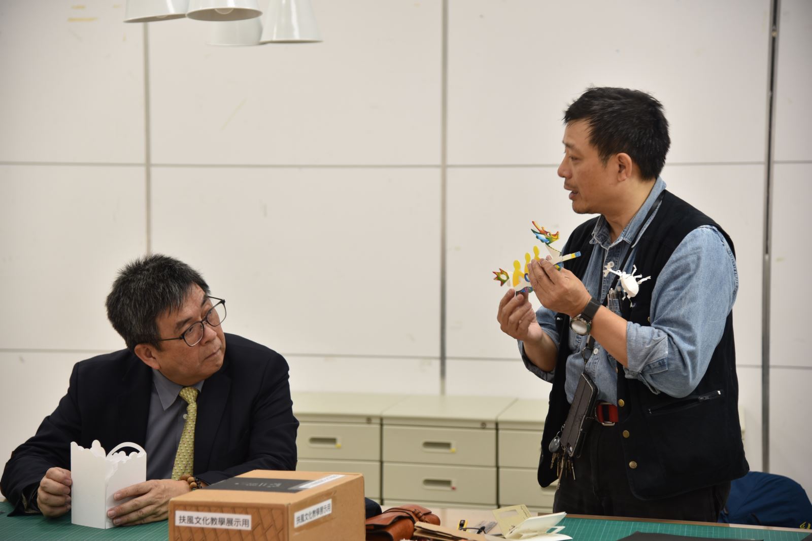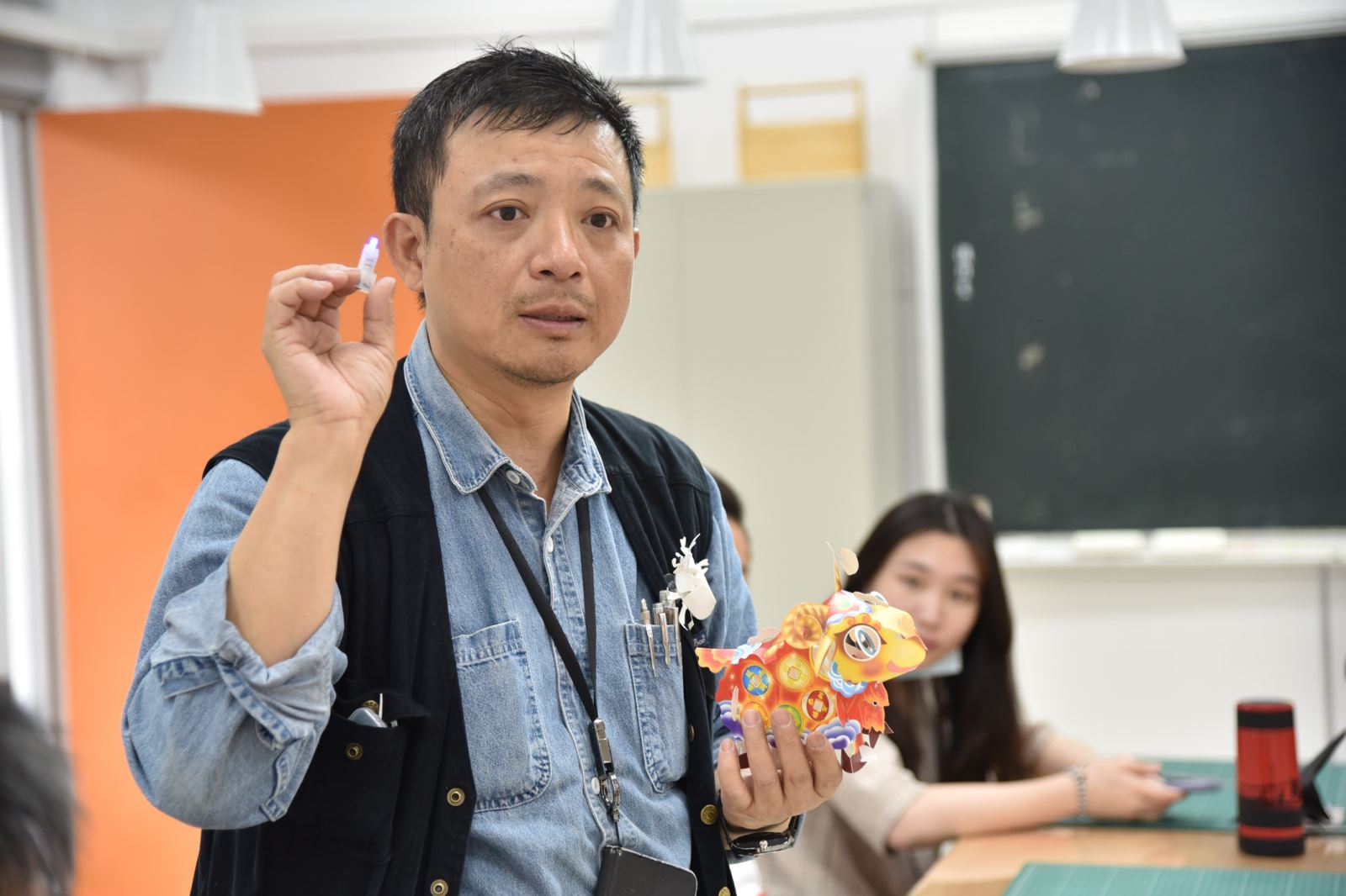 紙雕藝術家洪新富老師與學生分享他的紙藝人生。