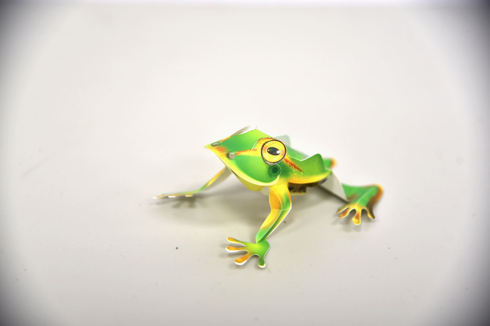 紙張經過對摺、再對摺,剪一刀,竟然變出一隻生動跳耀的樹蛙。