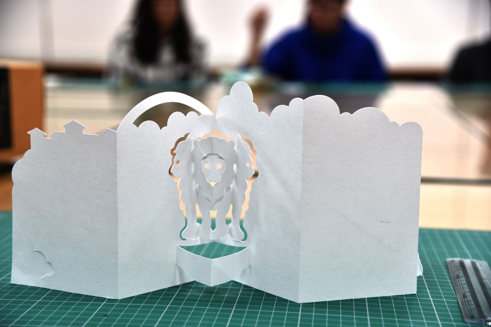 此次於華梵舉辦的「創意摺紙工作坊」,課程內容包含基礎介紹與實作練習,摺紙、紙雕、原理介紹、作品賞析等,洪新富老師並以華梵校園生態為主題,讓學生創作一本屬於自己的立體書。