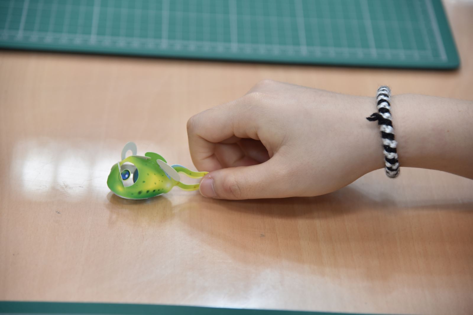 紙做的立體蝌蚪,肚子中藏了一顆彈珠就可以自由滑。