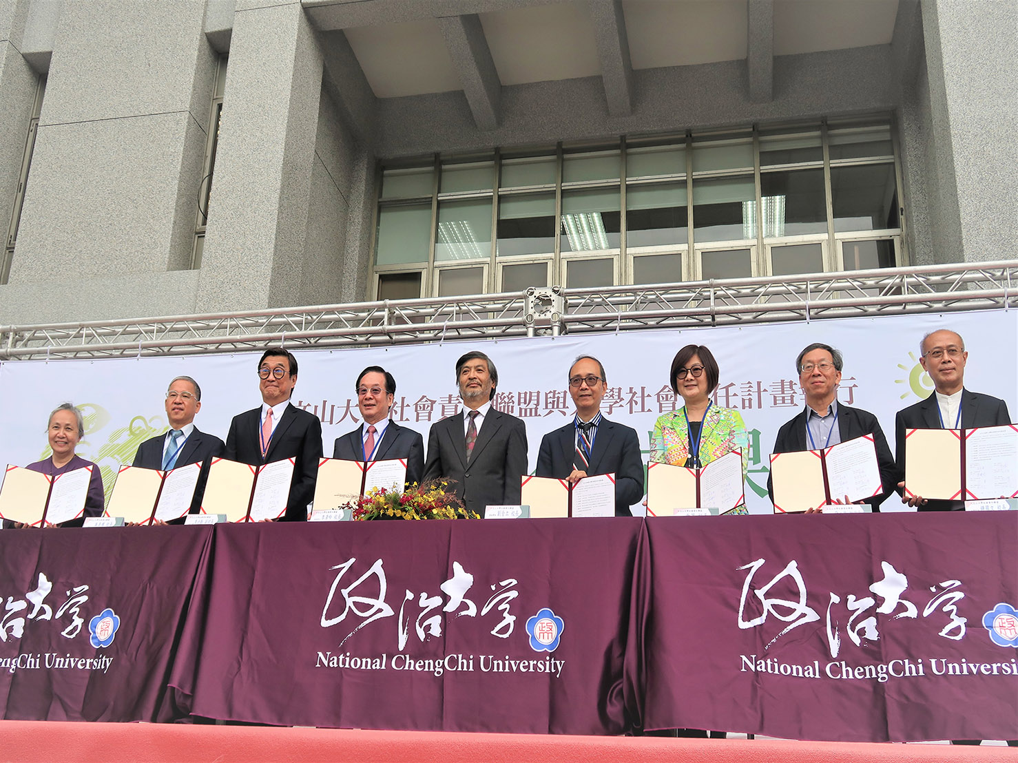 經過一年時間的準備,由政治大學扮演領頭羊的角色,協助統籌了110年度大文山地區大學社會責任聯盟成果展,也於今年邀請臺灣警察專科學校一同加入聯盟,各校也共同簽署「大文山地區大學社會責任合作意向書」,本校由簡江儒教務長代表林從一校長參加締約結盟儀式,並捎來林校長給予文山八仙的祝福,於祝福中期盼未來透過跨校跨域的結合,於社會責任議題下一同努力。