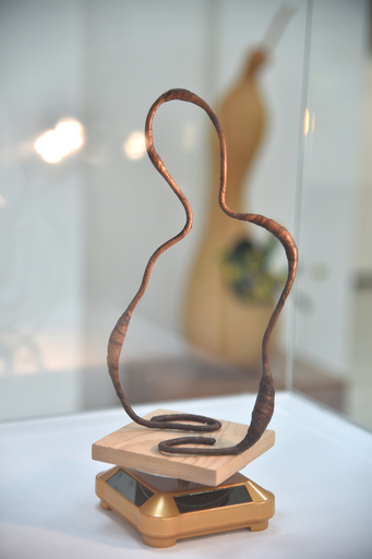 洪精雪的鋁線立體雕塑,呈現空中妙有的意象。