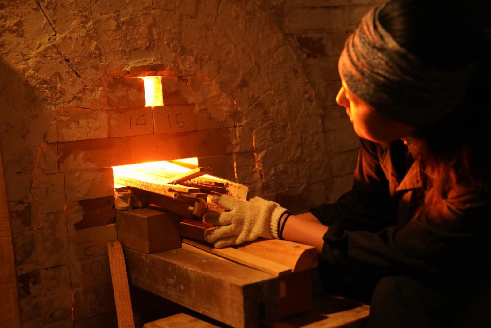 華梵窯第一燒,華梵美術系第一屆畢業校友吳姿瑩負責投柴。