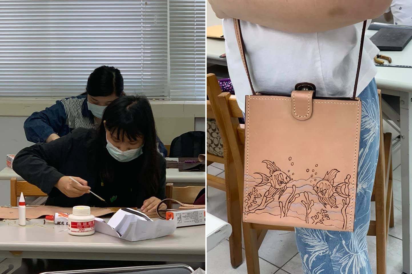 課程分為四次教學,讓學生有充分的時間密集完成作品。本次課程以學習皮革打版、皮革縫紉、邊緣收邊、上漆和刻字。