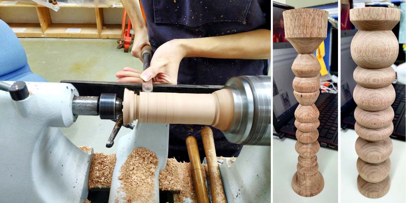 實習工場每學期都有開設工場機具之培訓課程,提供同學們能夠自主參與學習並且實際操作體驗,開設課程將針對不同需求設計課程內容,其中木工車床實作以工作坊的形式進行。
