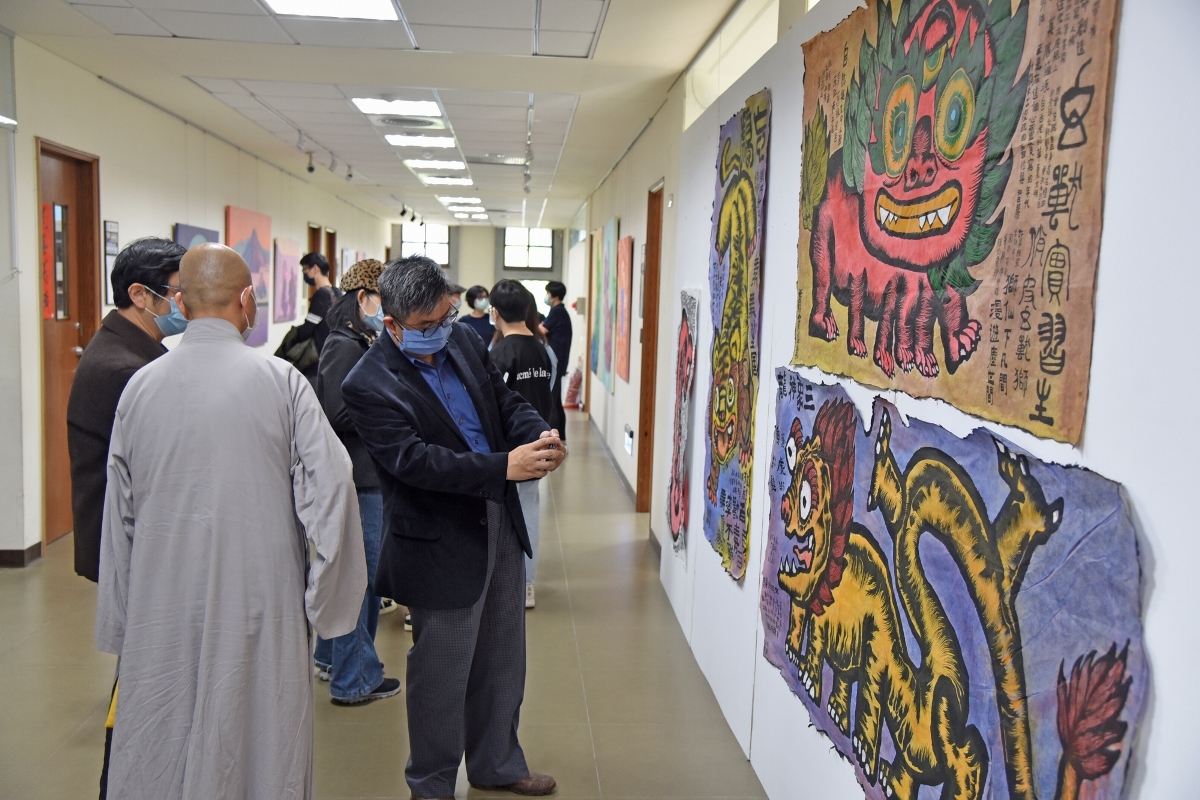 針對疫情延燒,學生還創作出法術高明、可以消滅疫情的幻獸神喵「喵僧法師」,以及為眾生消災解厄、將囂張病毒擊到灰飛湮滅的「千拳和尚」、「三象神龍」、「忘憂虎」,和身心靈處於病態等應景之作,展現出強大的創作能量與年輕藝術家對社會的敏銳感觸,吸引不少師生無畏疫情也要前來參觀,現場宛如在辦「口罩趴」,對學生來說著實是難忘的經驗。