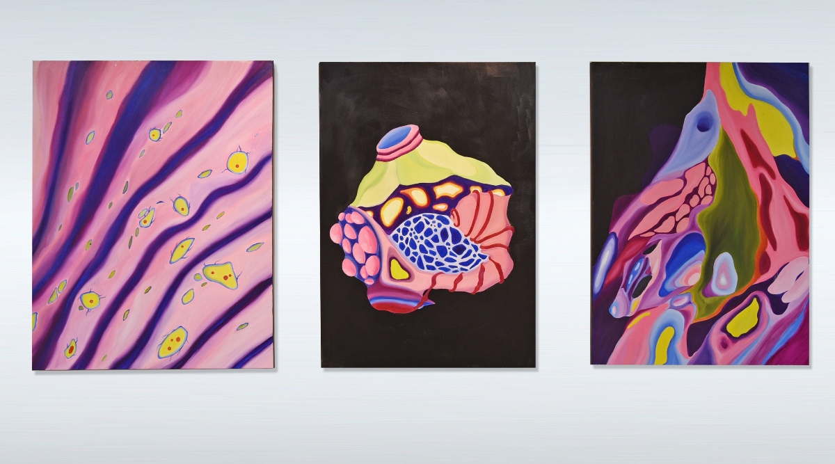 目前於華梵大學圖資大樓三、四樓公共迴廊開放空間展出的美創系畢展,以各類媒材創作的藝術品及文創商品多達200件,包括畫作、立體雕塑、攝影作品,以及婚紗設計、極限運動品牌服飾、貼身衣物、桌遊、吊飾、包包、酷卡、貼紙等,將迴廊空間妝點得夢幻繽紛,整棟樓館藝術力大爆棚。