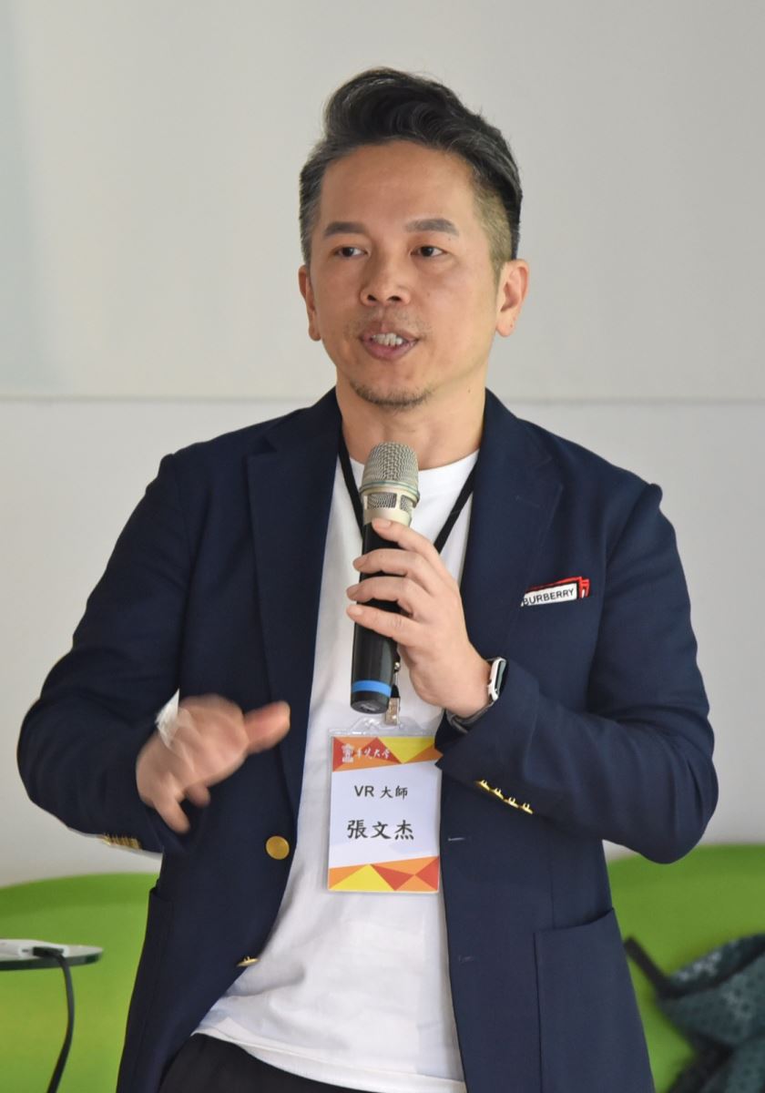 另一場演講「VR藝術作品『宇宙何許』和『望鄉』賞析」的主講者張文杰創意執行長,同時也是瑞意創科創辦人,他請大家思考兩個問題:「我想做什麼」以及「我能做什麼」?他認為,「我想做什麼」就是創新思維的方式。