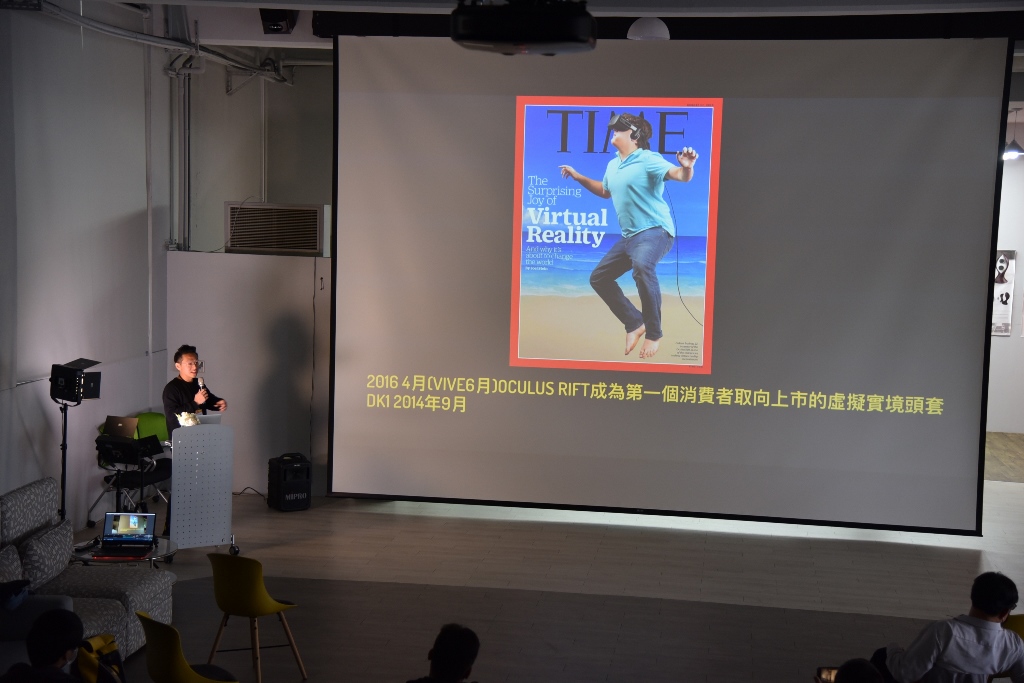 另一位演講者胡縉祥總監則貼心介紹VR歷史與自身學習VR技術的歷程。胡縉祥總監表示,藝術創作和互動設計對他來說是各半的結合,因此製作過程、腳本結構、技術等每一環節都缺一不可,對於媒材需要深入了解,藝術性、點子、想像力和團隊合作都非常重要。