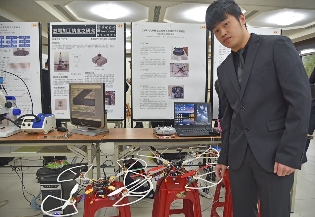 此次成果展的專題作品十分多樣,且多以日常生活應用為主,例如將無人機應用於夜間高爾夫球場,協助球場於夜間進行個人照明,桿弟車並可自動跟隨,讓民眾晚上下班後也可以打高爾夫,既實用又有創意。