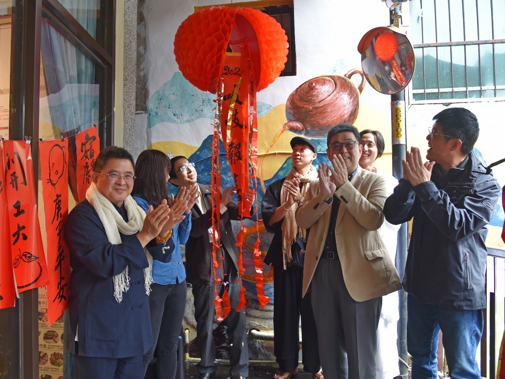 位於石碇的「淡蘭一號」彩繪牆熱鬧舉行揭幕儀式。