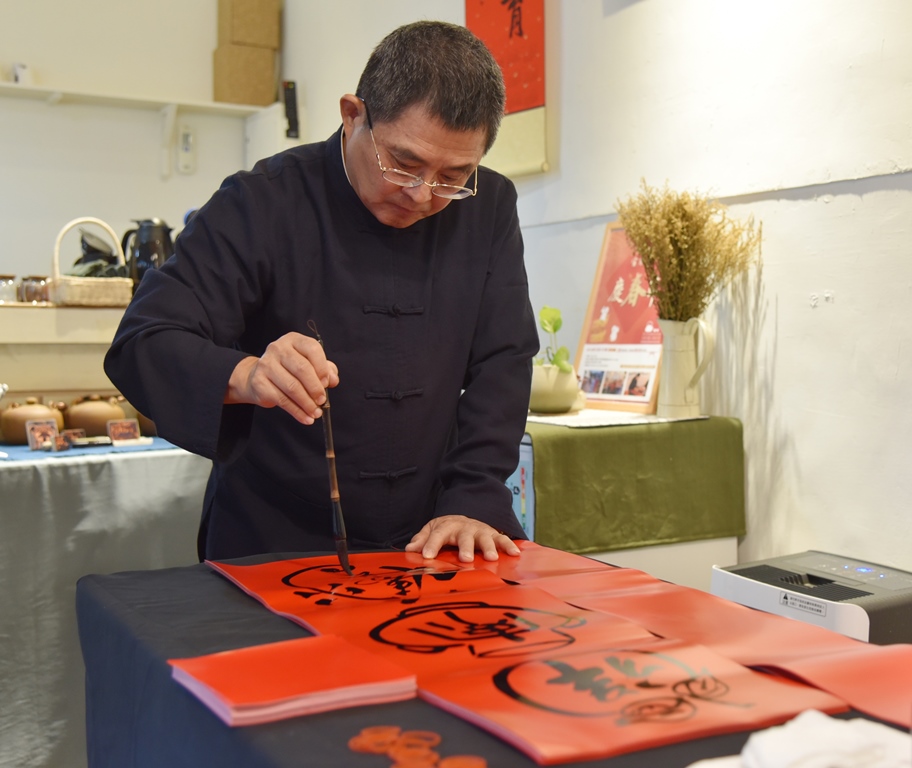 人文教育研究中心吳大仁老師現場揮毫書畫春聯。