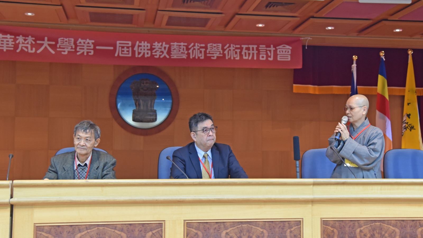 李天任校長也指出,華梵佛教藝術學系與研究所是全球第一個佛教藝術系所,今日的研討會論文涵蓋詩詞、書畫、造像、電影、歌詞、景觀境教等不同領域的佛教藝術,更有從日本、西藏、儒、道等角度深入探討者,是一個好的開始,希望明年能擴大廣邀各界人士參與,後年更發展成國際性的佛教藝術學術研討會,讓更多世人了解佛教藝術之美。