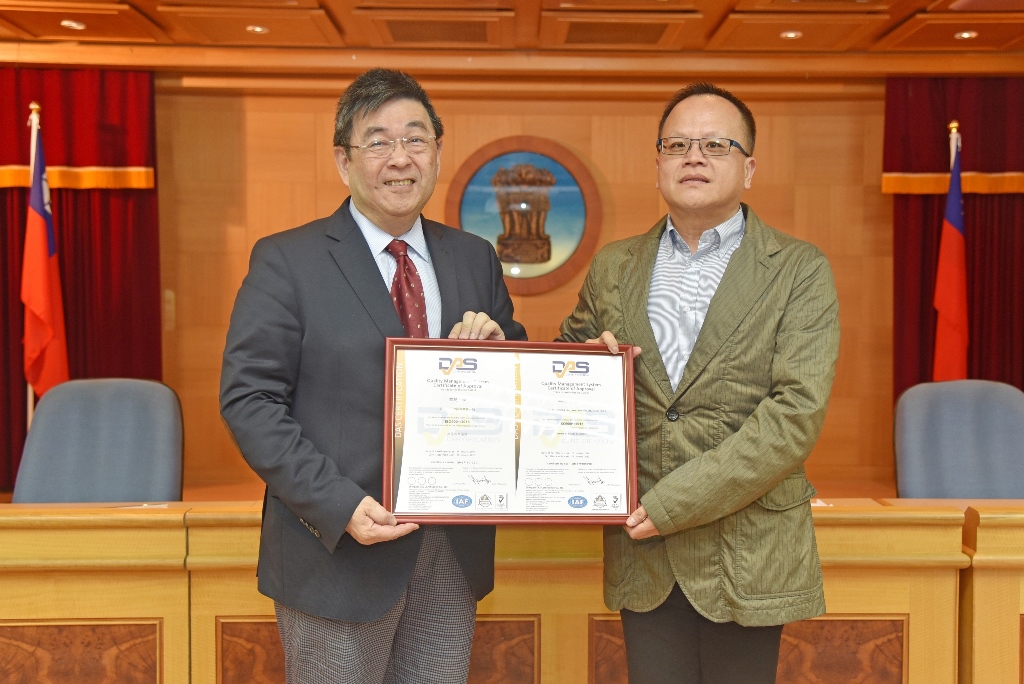 華梵大學於108年3月6日上午舉行行政會議,會議後並舉行ISO 9001:2015國際品質系統認證頒證儀式,由李天任校長接受認證單位亞瑞仕國際驗證有限公司陳勁宇副總經理頒授認證證書。
