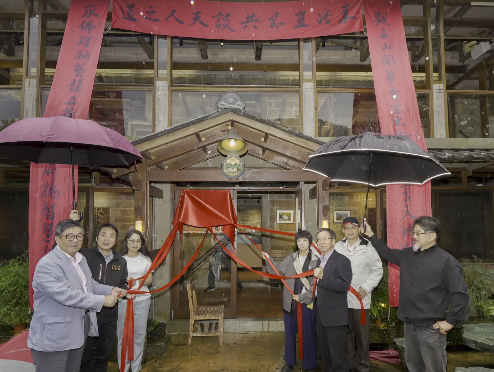 「華梵大學USR Hub」大學社會責任中心在「雲山禪茶藝文」揭牌成立,邀請區長王思凱(左二)、農會總幹事許淑惠( 左三)、日本大學生產工學部副教授永村景子(右四)、華梵大學校長李天任(左一)等國內外貴賓共同揭牌。 為結合民間力量共同推動石碇區地方創生與觀光發展,華梵大學10月底在鄰近石碇老街的「雲山禪茶藝文」成立「USR Hub」大學社會責任中心,邀請石碇區長王思凱、石碇農會總幹事許淑惠、日本大學生產工學部副教授永村景子等國內外貴賓共同揭牌,見證歷史性的一刻。